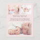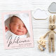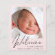 Eine preisgünstige Pastellpinke Kindergeburtserklärung. Die Vorderseite zeigt das Foto Ihres Neugeborenen, den vollständigen Namen, das Ankunftsdatum und die Geburtsdaten sowie "Willkommen" in einem eleganten Schrift. Auf der Rückseite, fügen Sie drei zusätzliche Fotos und Eltern-und Geschwister-Namen, und ein Dankeschön, Besuchen oder andere Nachricht.