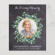 Moderne Aquarell Eukalyptus Grünpflanzen Beileid Foto Beerdigung Dankeschön Karten. Diese Beerdigungskarten sind mit einer einzigartigen Fotovorlage in eukalyptus botanischem Kranz, Namen und Daten in rustikalem Chalkboard-Design ausgestattet. Personalisieren Sie Ihre Rückmeldung mit Ihrer Dankesbotschaft. Diese Gedenkkarten eignen sich hervorragend für die Begräbniskarten, oder für die Feier des Beileids dank der Dankkarten. COPYRIGHT © 2020 Judy Burrows, Black Dog Art - Alle Rechte vorbehalten. Budget Beileid Beerdigung Vielen Dank Ihre Karte Eukalyptus