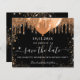 A girly and trendy Save the Date card for a 18th (or any age) birthday party. A classic black background decorated with faux gold glitter and balloons. Personalize and add a date and name/age. The text: Save the Date is written with a large trendy hand lettered style script.