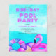 Budget Geburtstagspool Party Einladung. Niedliches sommerrosa Flamingo Design. Einfach den Text ändern. Das Papier ist dünner als Kartenpapier.