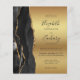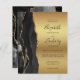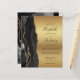 Die links Seite dieses eleganten, modernen Hochzeitseinladens besticht durch einen schwarzen Aquarellrahmen, der mit vergoldetem Imitat bestickt ist. Der individuell anpassbare Text kombiniert schwarze Schrift, Copperplate und kursiv Schriftart auf einem goldenen Imitat-Hintergrund. Auf der Rückseite ist ein passendes schwarz-goldfarbenes Agerat-Design zu sehen.