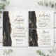Die links Seite dieses eleganten, modernen Hochzeitseinladens besticht durch einen schwarzen Aquarellrahmen, der mit vergoldetem Imitat bestickt ist. Der anpassbare Text kombiniert schwarzes Handschriftenskript mit schwarzer Kupferplatte und kursiven Schriftart auf weißem und goldgelbem Marmorhintergrund. Auf der Rückseite ist ein passendes schwarz-goldfarbenes Agerat-Design zu sehen.