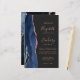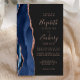 Die links Seite dieses eleganten, modernen Hochzeitseinladens besticht durch eine marineblau-blaue Aquarellgrenze, die mit Imitaten Rose Gold Glitzer bestickt ist. Der anpassbare Text kombiniert handgeschriebene Rose, Copperplate und kursiv Schriftart auf einem schwarzen Hintergrund. Auf der Rückseite ist ein passendes marineblau-blaues und goldfarbenes Dekor mit Rose.