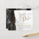 Dieses elegante Budget Hochzeit speichern Sie die Dattelkarte mit einem schwarzen Aquarellrahmen bestickt mit Imitaten Gold Glitzer. Der anpassbare Text kombiniert schwarz und goldfarbene Handschriftenschrift, Copperplate und kursiv Schriftart auf grauem und weißem Marmorhintergrund. Auf der Rückseite ist ein passendes schwarz-goldfarbenes Agerat-Design zu sehen.