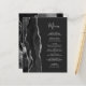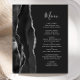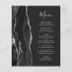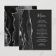 Die links Seite dieses eleganten, modernen Hochzeitsmenüs besticht durch einen schwarzen Aquarellrahmen, der mit Imitaten aus silberem Glitzer besticht. Der anpassbare Text kombiniert silbergraue Handschrift-Skripte und Copperplate-Schriftart auf einem schwarzen Hintergrund. Auf der Rückseite ist ein passendes schwarz-silberfarbenes Design erkennbar.