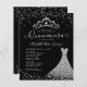 Modern Glam Black Silver Diamond Tiara Prinzessin Gown Dress Glitzer Confetti Sparkle 15. Geburtstag Quinceanera Einladung