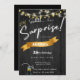 Die einfache, minimale Schwarz-Weiß-Überraschung Geburtstagsparty digitale Einladung mit Holzboden und Goldplatte.