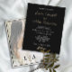 Modernes und raffiniertes Design mit eleganter Kalligraphie in weiß und gold auf schwarzem Hintergrund. Auf der Rückseite gibt es Platz, um Ihre Lieblings-Paare Foto und Ihre Monogramm hinzuzufügen. Passen Sie Ihre persönlichen Daten an.