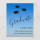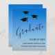 Budget Blue Abschluss Ankündigung. Schicken Sie Ihren Freunden und Ihrer Familie diese einfache, moderne Ankündigungskarte für den Abschluss. Dieses Design zeichnet sich durch einen blauen Himmel mit Gradkappen in der Luft! Personalisieren Sie mit Ihrem eigenen Namen, Schule und Jahr.