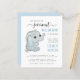 Eine preisgünstige virtuelle Duscheinladung für einen kleinen Jungen. "Unsere süße kleine Erdnuss ist auf dem Weg" ist in einer Mischung aus blau und weich grauem Typografie und einem hübschen Drehbuch mit Wimpern geschrieben. Personalisieren Sie die Namen des Babys und der künftigen Mutter in blauer Typografie neben einer niedlichen Wasserfarbe eines Babyjungen Elefanten und fügen Sie die Online-Duschdetails in schlichter moderner grauer Typografie hinzu.