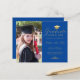 Diese elegante personalisierte Budget-Foto-Abschluss-Ankündigungskarte zeigt Ihr Foto auf der links und auf der rechten Seite ein Imitat goldene Grade-Kappe mit dem Wort "Graduate", Klasse/Jahr, Name und andere Zeremonie Details in formalen Imitate goldenen Drehbuch-Kalligraphie zu personalisieren auf einem königsblauen Hintergrund. Entworfen von Susan Coffey.