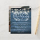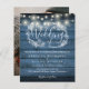 Mit hübschen Saitenlichtern und einem handgezeichnet Blumengarten kann diese elegante, preisgünstige Rustikale Kraftraum-Einladung mit Ihren Informationen in schicken Schriften auf blauem Holzpaneelenhintergrund und Ihrem Foto auf der Rückseite personalisiert werden. Entwickelt von Thisisnotme©