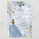Budget Elegant Dusty Blue Silver Floral Prinzessin Butterflies Quinceañera Einladung