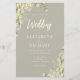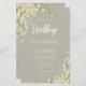 Diese rustikale botanische Hochzeitseinladung mit cremefarbenen Gängen in zwei Ecken auf beigem Hintergrund. Das Wort "Hochzeit" erscheint in einem cremefarbenen Pinselskript. Personalisieren Sie die Einladung mit den Namen der Braut und des Bräutigams in Serif Typografie und den Hochzeitsdetails in Kursivschrift.