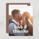 Dies ist eine preisgünstige böhmische Hochzeit Dankeschön-Karte mit einem Vintagen Retro-Schriftart zusammen mit einem modernen und einfachen Foto-Design, gedruckt auf einem Blatt Papier. Die Rückseite beinhaltet ein zweites Foto und eine Danksagung, die Sie personalisieren können. Ändern Sie die Farben, Texte und Fotos ganz einfach nach Bedarf. Bitte kontaktieren Sie den Designer, wenn Sie Fragen zu diesem Design haben.
