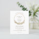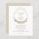 Dieses Hochzeitsdesign besticht durch die Namen von Braut und Bräutigam, die von einem goldenen Hoop gerahmt sind, der mit Aquarellgras dekoriert ist. Personalisieren Sie den hellbraunen Text mit den Namen des Paares und den Einzelheiten der Hochzeit. Die Rückseite ist in einem kräftigen Beige gehalten.