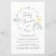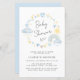 Niedliche preisgünstige Babydusche mit pastellblauen und gelben Wasserfarben von Regenbogen, Sonne, Herz, Sternen, Monden und Wolken.