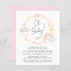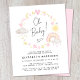 Niedliche und skurrile, preisgünstige Babydusche mit boho-inspiriert Pastellrosa und gelben Wasserfarben von Regenbogen, Sonne, Herz, Sternen, Monden und Wolken und "Oh Baby!" in einer stilvollen Kalligraphieschrift.
