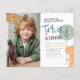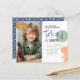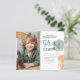 Eine preisgünstige Geburtstagsfeier mit einem handgezeichnet Dinosaurier, der einen Ballon hält. Im Ballon ist das Alter des Geburtstagsjungen. Der Einladungstext wird gedreht und auf den verlassen ausgerichtet, um ein lustiges Layout zu gewährleisten. Die Spitze der Einladung lautet "Stomp, chomp & roar. Lasst uns wie ein Dinosaurier Party machen!" Unten ist der Name deines Kleinen in einem handgeschriebenen Schriftart geschrieben. Die Informationen zum Party werden unten mit zusätzlichem Speicherplatz für eine benutzerdefinierte Nachricht geschrieben. Auf der links Seite der Karte befindet sich ein Foto Ihrer Wahl. Das Foto und das Design teilen sich in eine weiß gebürstete Linie. Karten werden in Bio Formen umgeschaltet, während der Hintergrund blau ist. Die Farbpalette dieses Designs ist blau, orange und grün. Perfekt für jedes Alter Kind! Farbenfrohe Dinosaurier-Geburtstagseinladungen. Eine Standard-Einladungsversion dieses Designs ist in meinem Shop erhältlich. Bitte beachten Sie, da dies auf Zazzle's Budget Paper Option ist, empfehlen wir nur die semi-glänzende Oberfläche. Gerne können Sie mir Ihre Fragen mitteilen - ich helfe Ihnen gerne!