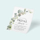 Feiern Sie die Braut-in-Stil mit unserer wunderschönen eukalyptus Brautdusche Einladung. Dieses wunderschöne Design mit eleganten Eukalyptus-Blätter vor einem sanften, neutralen Hintergrund macht es zur perfekten Wahl für ein botanisches Brautparty. Mit unserer atemberaubenden Eukalyptus-Brautdusche machen Sie den besonderen Tag der Braut noch unvergesslicher. Mit seinem schönen Design und seinen individuell anpassbaren Optionen ist es der perfekte Weg, die Freude und Spannung der kommenden Neuheiten mit Familie und Freunden zu teilen. Bestelle noch heute!