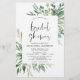 Das Budget Blumengrün Botanische Wasserfarbenfeder Brautdusche Einladungen auf grünem und weißem Hintergrund - beinhaltet eine schöne und elegante Schriftzeichen-Typografie mit modernen botanischen Blätter und Grün für die besondere Braut zu sein.