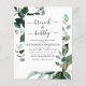 Das Budget Brunch und die Bubbly Champagne Greenery Botanical Watercolor Spring Brautdusche Einladungen auf weißem Hintergrund - beinhaltet eine schöne und elegante Schriftzeichen mit modernen botanischen Blätter und Grün für die besondere Braut zu sein.