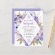 Elegante lila und blaue Blumen schaffen einen diamantförmigen Rahmen, um Ihre Details des Brunch nach der Hochzeit zu umgeben.