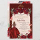 Budget Elegant Burgundy Gold Floral Prinzessin Quinceañera Quince Einladung