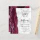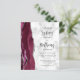 Der links Rand dieser eleganten, modernen Hochzeitseinladung besticht durch einen bordeauxroten, mit silberfarbenem Imitat-Glitzer bestickten Aquarellrand. Der anpassbare Text kombiniert schwarzes Kalligraphieskript und sans Serif-Schriftart auf grauem und weißem Marmorhintergrund. Auf der Rückseite ist ein passendes bordeauxfarbenes und silberfarbenes Design zu sehen.