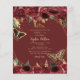 Budget Elegant Burgundy Gold Floral Butterflies Sweet 16 Einladung