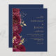 Budget Burgundy Floral Navy Blue Wedding Invite