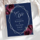 Budget Burgundy Floral Navy Silver Save the Date