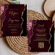 Budget Burgundy Gold Agate QR Code Einladung