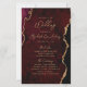 This elegant, modern wedding program features a burgundy red agate background trimmed with gold faux glitter. The text appears in gold-colored handwriting and copperplate fonts.