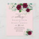 Hübsche Burgund-Rose, Eukalyptus-Blätter und Gypsophila-Spiele finden Sie auf diesem eleganten, themenorientierten Hochzeitsartikel.