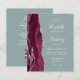 Der links Rand dieser eleganten, modernen Hochzeitseinladung besticht durch einen bordeauxroten, mit silberfarbenem Imitat-Glitzer bestickten Aquarellrand. Der anpassbare Text kombiniert weiße Handschrift, Copperplate und kursiv Schriftart auf einem grünen Weiß-Hintergrund. Fügen Sie zusätzliche Details auf der Rückseite, zusammen mit einem QR-Code, um Ihren Gästen zu helfen, besuchen Sie Ihre Hochzeitswebsite.