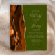 Die links Kulisse dieser modernen Hochzeitseinladung besticht durch eine gelb-orange und braun-farbene, mit Imitaten vergoldeter Glitzer bestickte Wasserfarbe. Der individuell anpassbare Text verbindet eine handgeschriebene Schrift, Copperplate und kursiv Schriftart auf einem olivgrünen Hintergrund. Die Rückseite weist ein passendes Drehdesign auf.