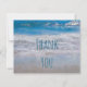 Ocean Beach Wellen blau weißen Küsten nautischen Thema Haushalt danke Ihnen Karten. Schönes Wasser und tropischer Sandstrand inspirierte Sommerurlaubsszene. Chic, trendig, modern, elegant, cool, Reise. Blaues Skript kann personalisiert sein. Bildrecht Marg Seregelyi Fotografie.