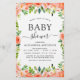 Budget Coral, Peach and white Floral und Eukalyptus Greenery Botanical Spring oder Summer Baby Shower Einladungen - beinhaltet schöne und elegante Drehbücher Typografie mit modernen botanischen Blume und Grün für die besondere Mutter zu feiern für ein Jungen, Mädchen oder Geschlecht neutralen Party.