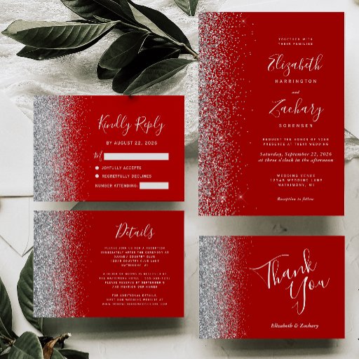 Budget Crimson Silver Glitzer Einladung Hochzeit