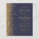 Die links Kulisse dieser modernen Hochzeitseinladung besticht durch einen vergoldeten Glitzer mit Imitaten. Der anpassbare Text kombiniert goldfarbenes Skript und singt serifenlose Schriftart auf dunkelblauem Hintergrund. Die Rückseite ist mit einem dunkelblauen und goldenen Design ausgestattet.