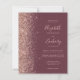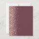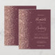 Die links Kulisse dieser eleganten, modernen Hochzeitseinladung besticht durch eine Rose Gold Imitat Glitzer-Grenze. Der anpassbare Text kombiniert eine handgeschriebene Handschrift mit blasser Rose in goldfarbenem Farbton, Kupferplatte und kursiven Schriftart auf dunkelbordeauxfarbenem Hintergrund. Auf der Rückseite ist ein passendes Bordeaux- und Rose-Gold-Design.