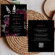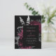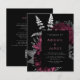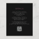 Dieses elegante, stimmungsvolle Hochzeitsinklusive besticht durch ein romantisches Blumenstrauß in Bordeaux mit silberner Imitat-Folie und Glitzer-Blattwerk auf schwarzem Hintergrund. Passen Sie den blassburgundischen und silbergrauen Text in stilvollen Schriftart auf einem dunklen Rechteck an. Die Rückseite bietet Platz für Hochzeitsdetails auf einem soliden schwarzen Hintergrund, zusammen mit einem QR-Code können Gäste scannen, um Ihre Website und UAWG.