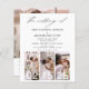 "The Wedding of Modern Elegant Four (4) Foto Collage and Large Date Minimalistisch Wedding Invitation" - eine Mischung aus zeitgenössischer Eleganz und Einfachheit. Diese Einladungen zeichnen sich durch eine moderne Typografie aus, die Eleganz, Einfachheit und eine Touch der Moderne ausstrahlt, die perfekt für Ihre minimalistische Hochzeitsfeier geeignet ist. Was diese Einladungen auszeichnet, ist die Einbindung eines QR-Codes, der Technologie und Tradition nahtlos integriert. Dieser QR-Code kann personalisiert sein, um Ihre Gäste zu einer Website oder digitalen Inhalten zu führen, die mit Ihrer Liebe, Ihren Hochzeitsdetails oder sogar einer virtuellen UAWG in Zusammenhang stehen, wodurch Ihre Hochzeitskommunikation eine einzigartige und bequeme Dimension erhält. Nach Ihrer eleganten und minimalistischen Hochzeitsfeier verwandeln sich diese Einladungen in wertvolle Pflaster, die die Erinnerungen Ihres besonderen Tages bewahren. Mit dem QR-Code werden sie zu einer Brücke zwischen dem Traditionellen und dem Digitalen, was Ihre Hochzeitskommunikation nicht nur schön, sondern auch technologisch innovativ macht. Set den Ton für eine Hochzeit, die zeitlos und modern ist mit diesen Einladungen.