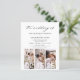 "The Wedding of Modern Elegant Four (4) Foto Collage and Large Date Minimalistisch Wedding Invitation" - eine Mischung aus zeitgenössischer Eleganz und Einfachheit. Diese Einladungen zeichnen sich durch eine moderne Typografie aus, die Eleganz, Einfachheit und eine Touch der Moderne ausstrahlt, die perfekt für Ihre minimalistische Hochzeitsfeier geeignet ist. Was diese Einladungen auszeichnet, ist die Einbindung eines QR-Codes, der Technologie und Tradition nahtlos integriert. Dieser QR-Code kann personalisiert sein, um Ihre Gäste zu einer Website oder digitalen Inhalten zu führen, die mit Ihrer Liebe, Ihren Hochzeitsdetails oder sogar einer virtuellen UAWG in Zusammenhang stehen, wodurch Ihre Hochzeitskommunikation eine einzigartige und bequeme Dimension erhält. Nach Ihrer eleganten und minimalistischen Hochzeitsfeier verwandeln sich diese Einladungen in wertvolle Pflaster, die die Erinnerungen Ihres besonderen Tages bewahren. Mit dem QR-Code werden sie zu einer Brücke zwischen dem Traditionellen und dem Digitalen, was Ihre Hochzeitskommunikation nicht nur schön, sondern auch technologisch innovativ macht. Set den Ton für eine Hochzeit, die zeitlos und modern ist mit diesen Einladungen.