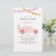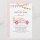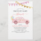 Budget Drive by Baby Shower Watercolor für eine Frühjahrsjungfrau oder Boy Shower Einladungen auf weißem Hintergrund - beinhaltet eine schöne und elegante Schriftzeichen-Typografie mit niedlichem Auto und Ballons für die besondere Mutter zu sein zu feiern.