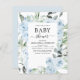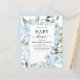 Das Budget Dusty Blue Floral Rose und Eukalyptus Botanical Greenery Watercolor Spring oder Summer Baby Shower Einladungen - beinhaltet eine schöne und elegante Schriftzeichen Typografie mit modernen botanischen Blume und Grün für die besondere Mutter zu feiern für ein Baby Boy oder Baby Girl Neuankündigung.
