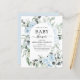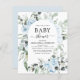 Das Budget Dusty Blue Floral Rose und Eukalyptus Botanical Greenery Watercolor Spring oder Summer Baby Shower Einladungen - beinhaltet eine schöne und elegante Schriftzeichen Typografie mit modernen botanischen Blume und Grün für die besondere Mutter zu feiern für ein Baby Boy oder Baby Girl Neuankündigung.