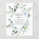 Die preisgekrönten blauen Rose und die Eukalyptus Botanischer Grüner Wasserfarben Frühling oder Sommerdusche Hochzeitsdusche Einladungen - beinhalten wunderschöne und elegante Schriftzeichen mit modernen tropischen botanischen Blume und Grün für die besondere Hochzeitsfeier.