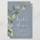 Budget Dusty Blue Eukalyptus Greenery Sukkulent Botanische Wasserfarben Frühlingsdusche Hochzeitsdusche Einladungen auf weißem Hintergrund - beinhaltet schöne und elegante Schrift Typografie mit modernen botanischen Blätter und Grün für die besondere Braut zu sein zu feiern.